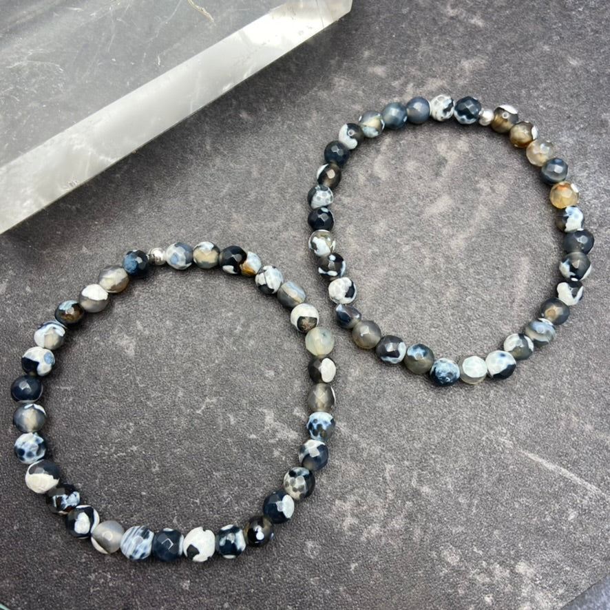Make a statement with this Black Agate stretch bracelet! Polished beads showcase deep blacks accented with subtle hints of white and blue, creating a sophisticated look that's anything but boring. Easy to wear and impossible to ignore, this piece brings understated glamour to your wrist with zero effort required. No bead is the same, making this a one-of-a-kind piece!